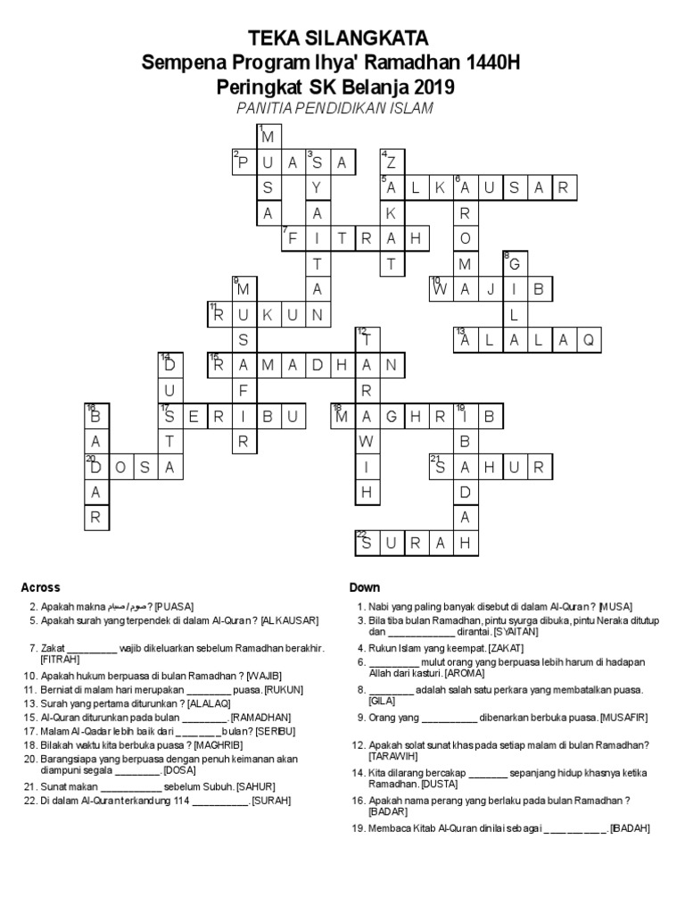 Pendidikan khas Pendidikan Islam Kuiz Ihya Ramadhan. Imej contoh peraduan teka silang kata 2017 yang sangat berguna untuk guru ini dipetik dari artikel berikut. Jika betullah ya maka anda semua berada di tempat yang betul.